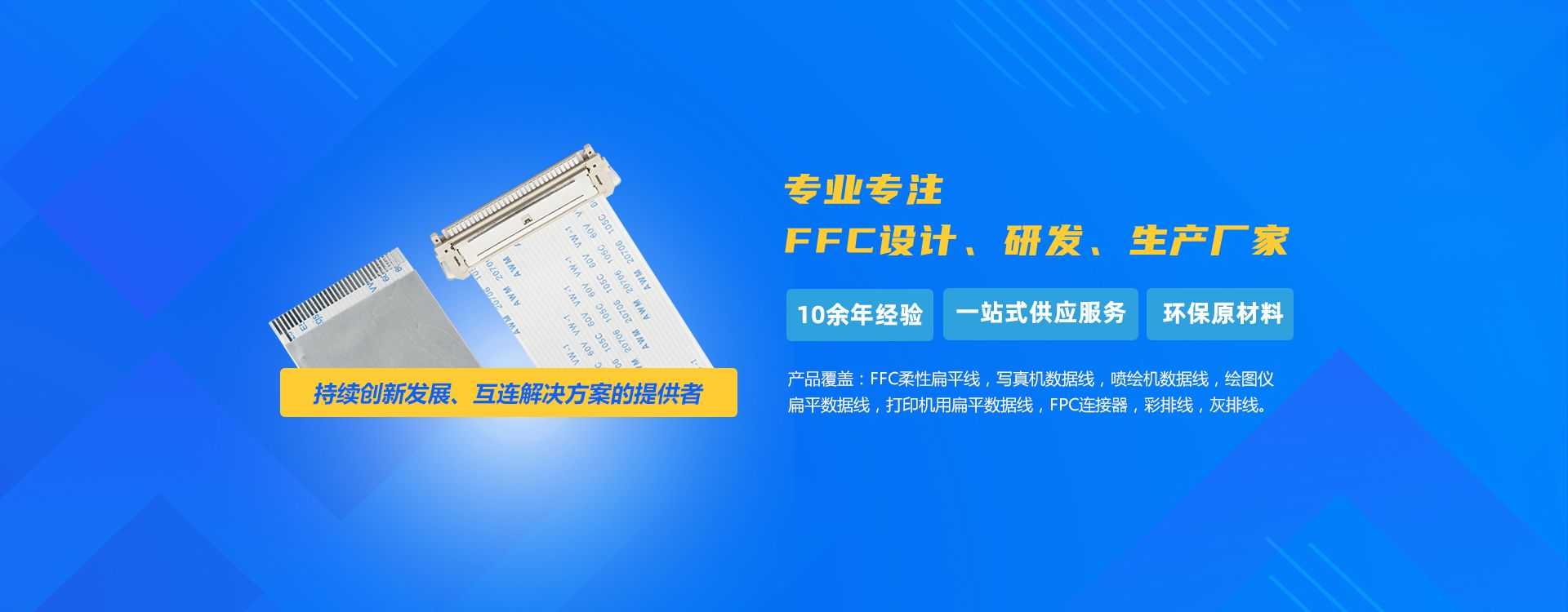 柔性扁平電纜 Flexible Flat Cable(FFC)可以任意選擇導線數目及間距,使聯線更方便,大大減少電子產品的體積,減少生產成本,提高